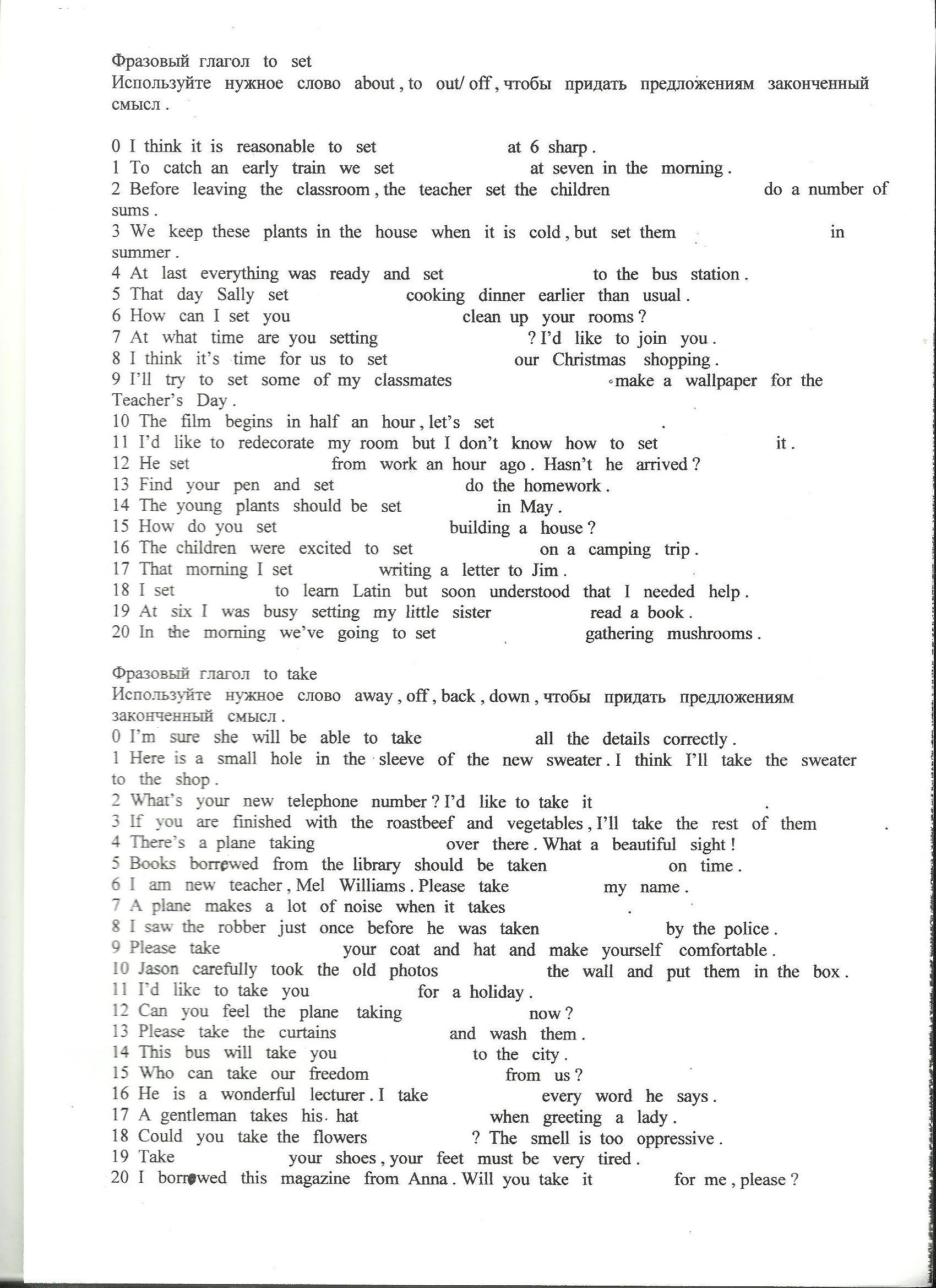 Фразовые глаголы set и  take.